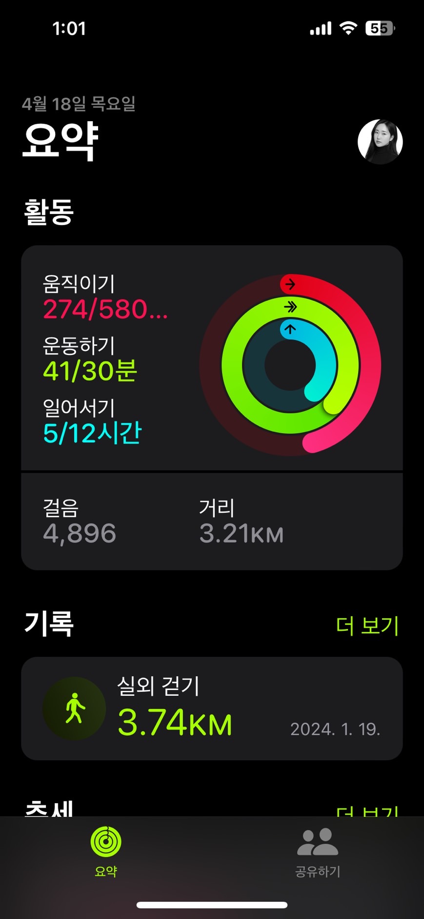 점심에 나가서 실외 걷기 했던