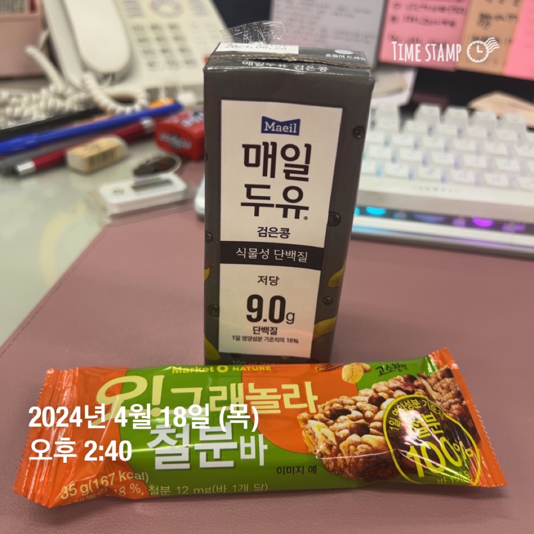 두유랑 시리얼바 먹고