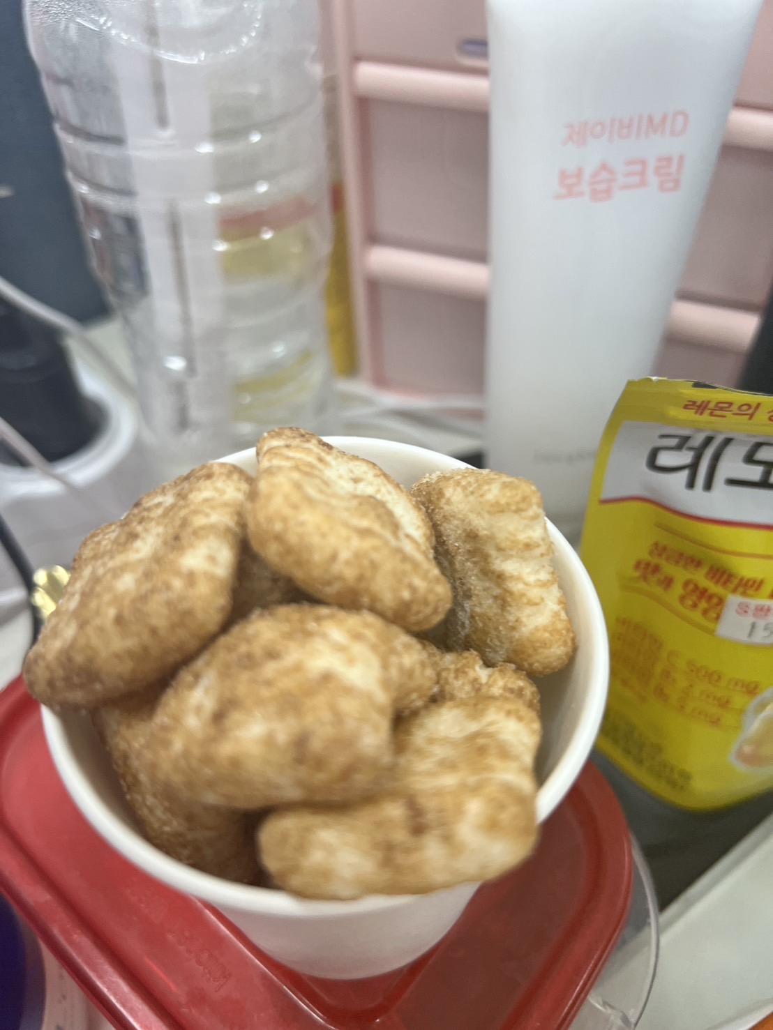 간식으로 먹자면서 종이컵에 줬지만