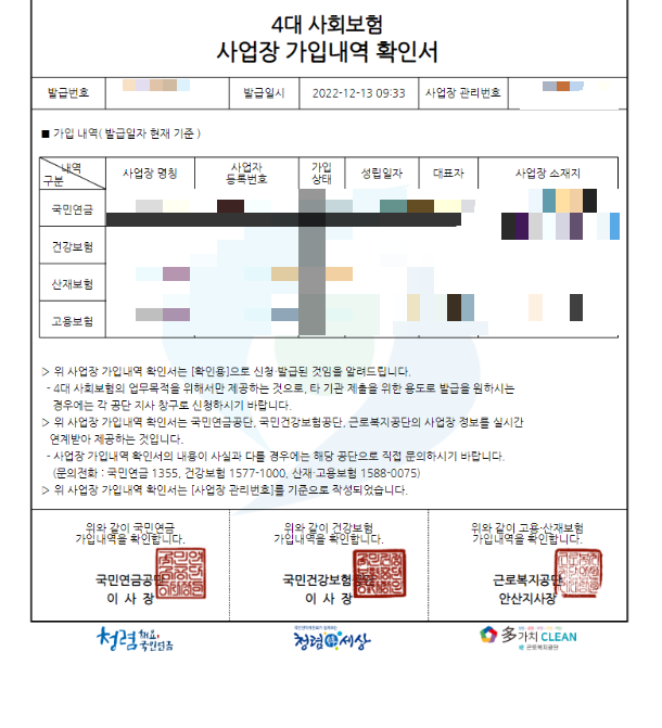 사대보험명부 가입자 명부 발급